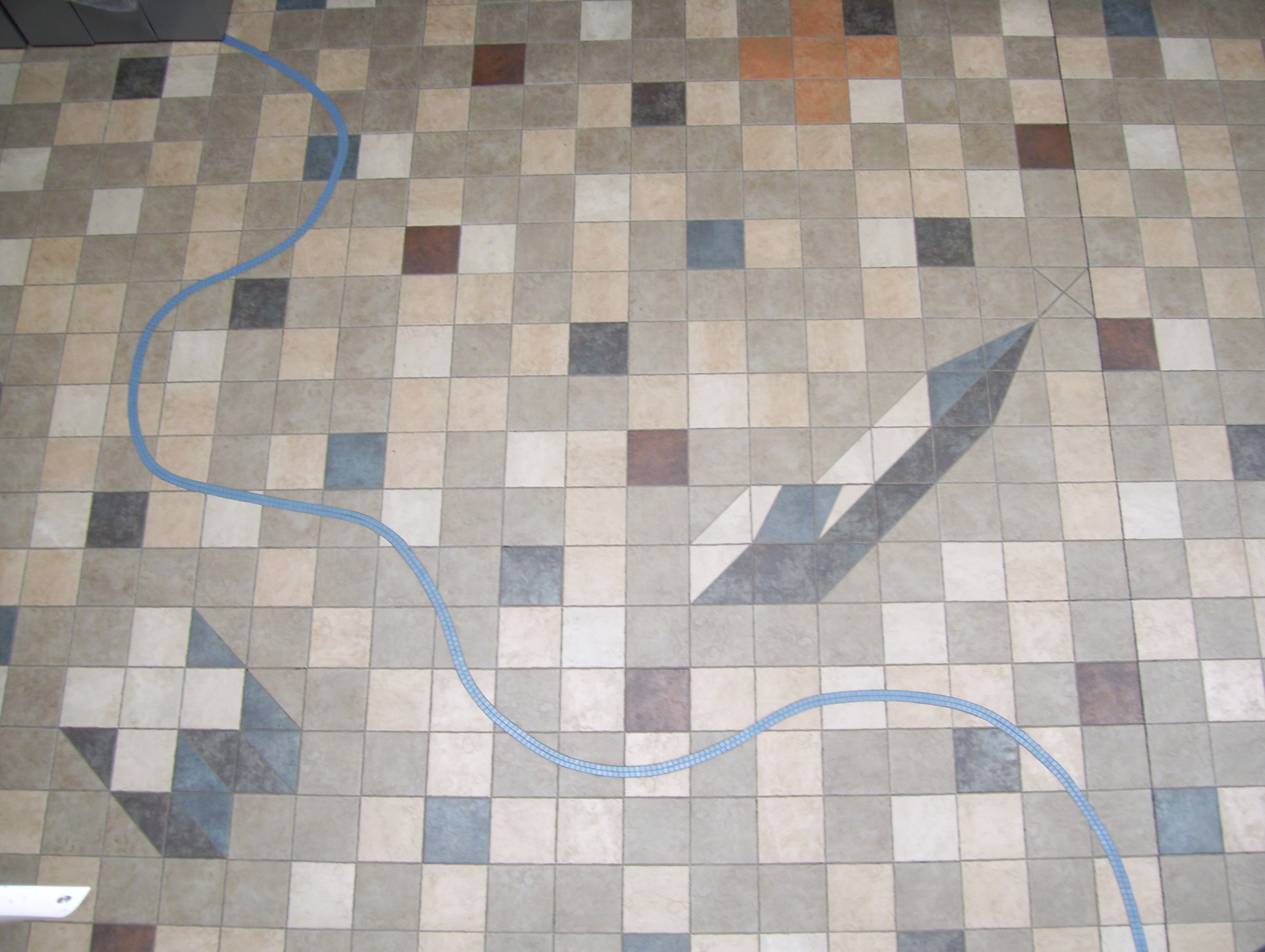 The Ceramic Tile Floor. Tile. Placed in the "main street" of the University Centre. It reflects an abstract aerial view of prairie landscape.