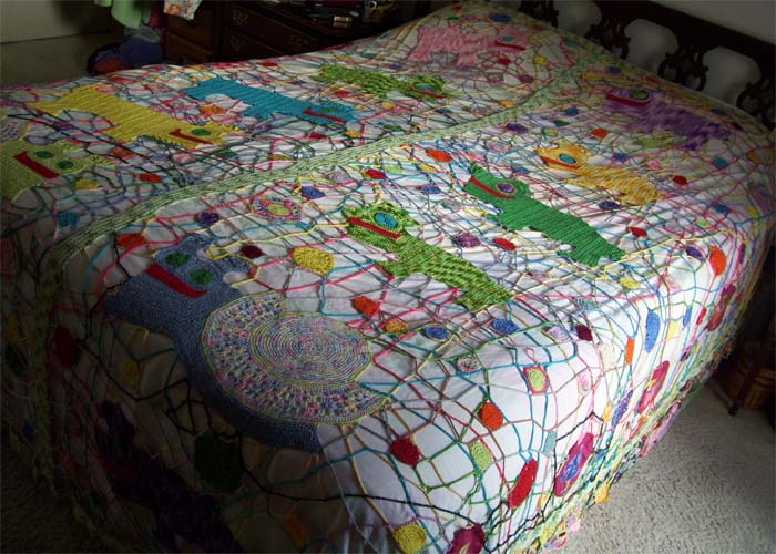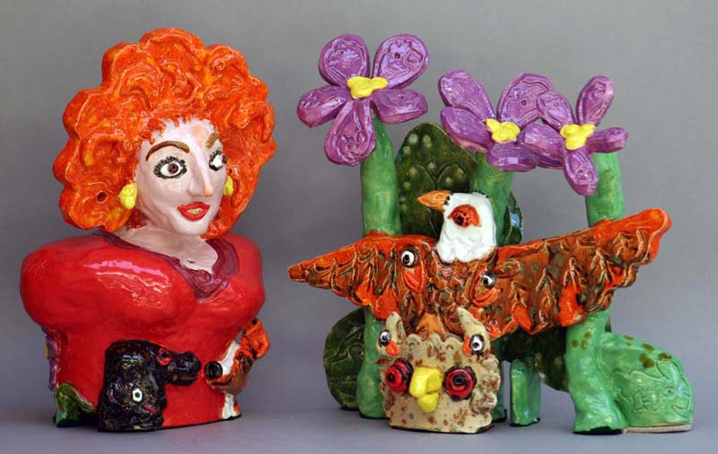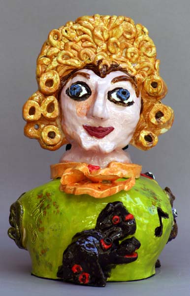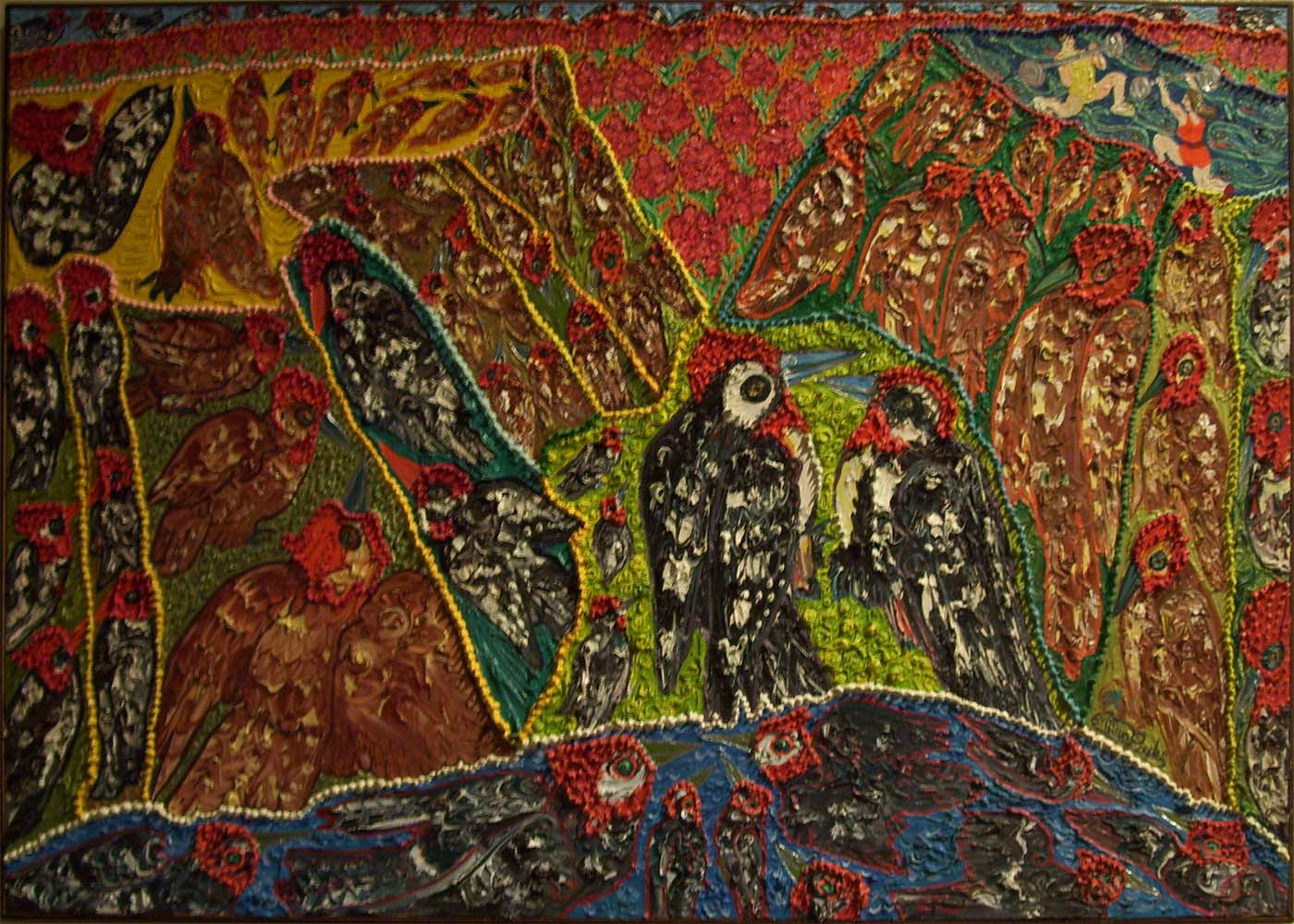 "Maija Peeples-Bright paints a fantastic world populated with charming animals she calls "Beasties." Her work is neither naive or primitive, but instead a translation of her passion for decorative techniques, especially in ceramics and stitching, to paint and canvas."